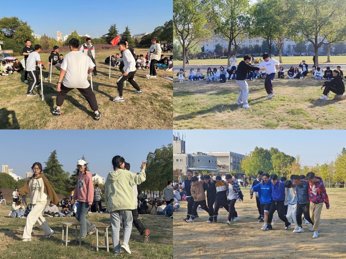 此次活动由四个游戏环节组成,第一部分是“蒙眼互打”游戏,在双方队员就位后,戴上眼罩,双方原地转五圈后开始游戏。游戏过程中拉近了彼此之间的距离,提升了彼此的信任度。第二部分是“添字”游戏,主持人任意给出一个字,每个小组成员在原字的基础上添笔画形成新字,新字最多的小组获胜。通过小组成员的集思广益,笔画不断变化,锻炼了学生的思维能力,增强了团队精神,也彰显了当代大学生的青春活力和齐头并进的精气神。第三部分是“抢板凳”游戏,参加人员在凳子外围成一圈,按照主持人指示抢板凳坐下,这个环节在于锻炼同学们的协调平衡能力,增强灵敏性。在一阵阵的欢声笑语中,全场的氛围被调动起来,将此次活动推向高潮。第四部分是“十人九足”游戏,团队成员脚系在一起,跑向终点,该环节中培养了同学们的反应能力和合作能力,增强同学们之间的亲密感,让彼此更加熟悉。