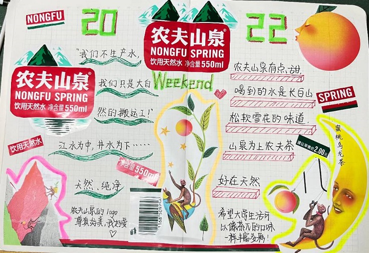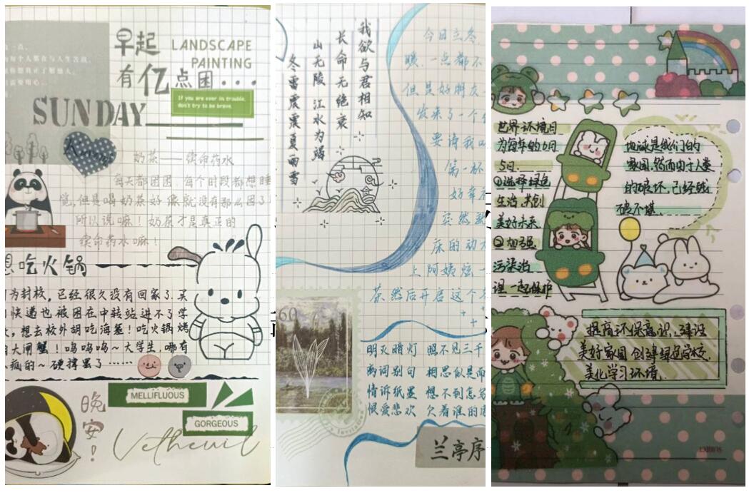 比赛共收到40余幅作品,每一个参赛作品的构思和设计都独具匠心、别出心裁。杜飞霏创作的手账表达了他“热血青年,无畏青春,全力以赴,勇往直前”的精神面貌;张辰把他日常爱看的电影融入手账中,记录了温暖心灵的点滴;丰萤的手账体现的是低碳生活的理念;黄忠庆将初中时和朋友们一起度过的快乐时光画进了手账,当心情不佳的时候,看到这些手账就又重拾了信心。