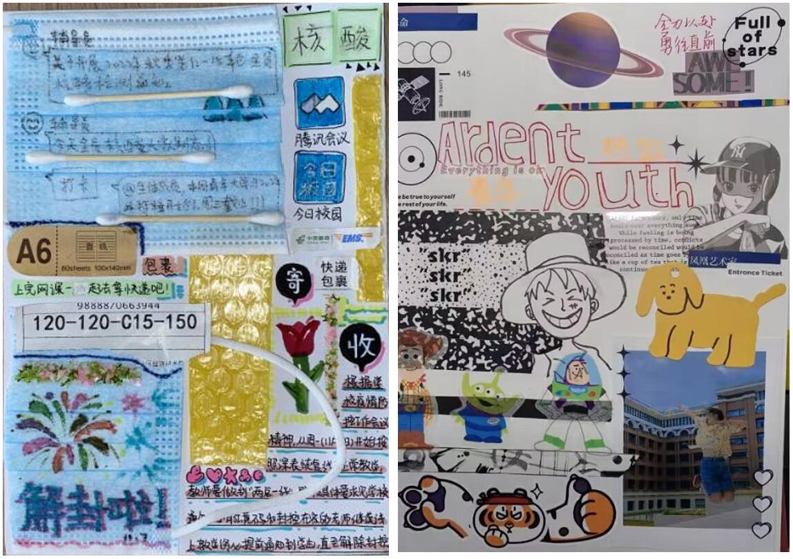 一笔一画解忧思,一点一线吐真情,同学们在手账中记录了疫情封闭式管理下依然丰富多彩的日子、记录了每天发生的有趣的事情、记录了学习和生活计划,宣泄了情感、收获了心灵的成长,同时也表达了对生活的热爱,对美好的追求,展现了大学生们健康、积极的心理状态。(图/文:王月竹 汪梓恒;审核:王媛)