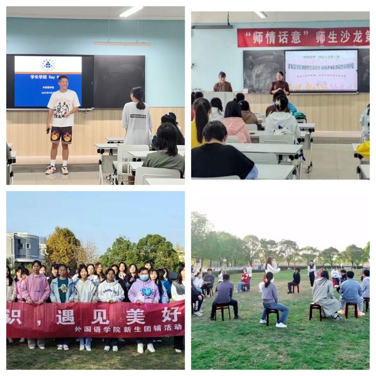 为进一步打开心扉、对话共情,学院广泛开展“经验交流”活动,切实发挥专业教师和高年级学长学姐榜样引导作用,在面对面互动、心与心交流过程中,“大手牵小手”,互助共成长。学院举办“学长学姐say hello”新生适应性教育活动,让学长学姐讲述自己的学习历程、学习经验,为迷茫的同学们指点迷津。组织开展“师情话意”师生沙龙,11月2日,外国语学院特邀大学生心理健康教育中心吉晓青老师为学院学生干部开展心理健康科普讲座,学生代表到场聆听讲座。迄今为止,“师情话意”师生沙龙已经举办了八期。开展“感恩母亲相伴,悦享美好时光”三行情诗活动:结合英语专业特色,帮助同学们表达对母亲的感恩,留给妈妈一份温柔和浪漫。