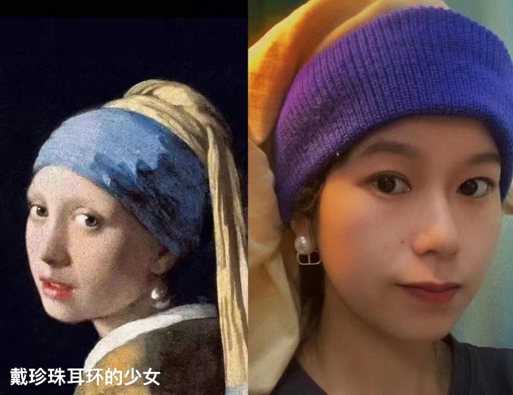 22级环境设计专业戴秋红选择了奥地利肖像画家弗里德里希·冯·莫林的作品《迷失在梦中》,利用日常生活中的物品还原了原作的着装与表情细节,令人耳目一新。