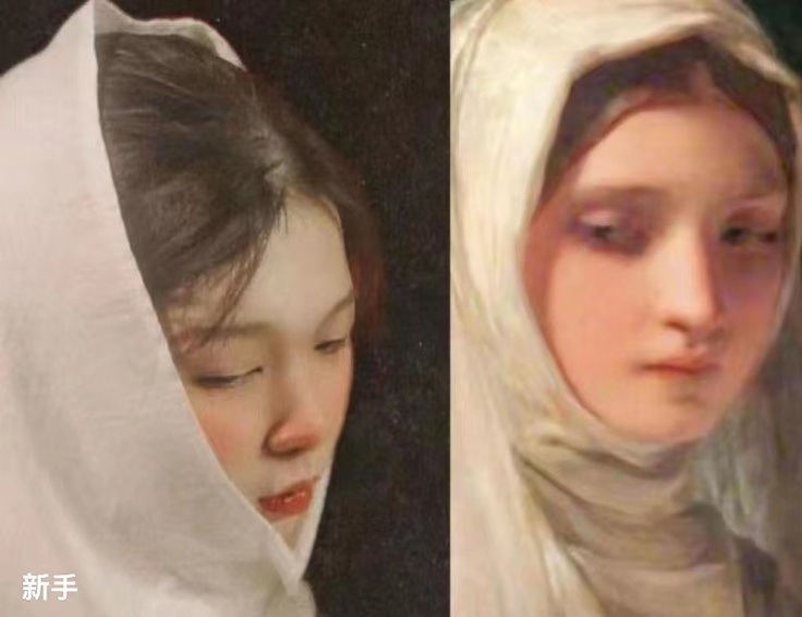 21级环境设计专业张园舒涵选择模仿的是英国著名画家埃德蒙·布莱尔·莱顿1920年创作的油画《婚礼签字》,描绘了新娘婚礼时的情景。洁白的婚纱、皎好的脸庞、认真严肃的神情生动地再现了新娘的美丽和婚礼的圣洁,让人似乎亲临其中,感受到婚礼与爱情的美好神圣。