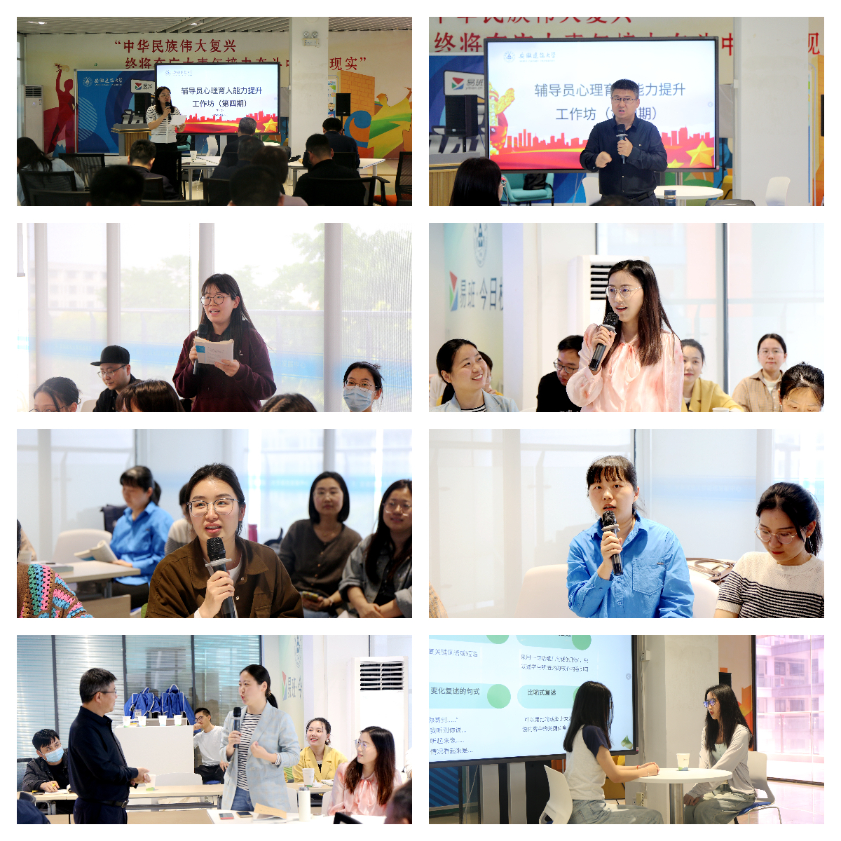 交流环节,辅导员老师们积极发言,交流了他们在实际工作中运用复述技术的经验和感悟。他们分享了如何在专业辅导中融入复述技术,帮助学生更好地应对学业压力和职业规划。认为通过复述技术,能够更深入地了解学生的内心世界,帮助他们解决情绪问题,促进学生的全面发展。每位老师的发言都充满了真挚的情感,让现场气氛更加热烈和融洽。