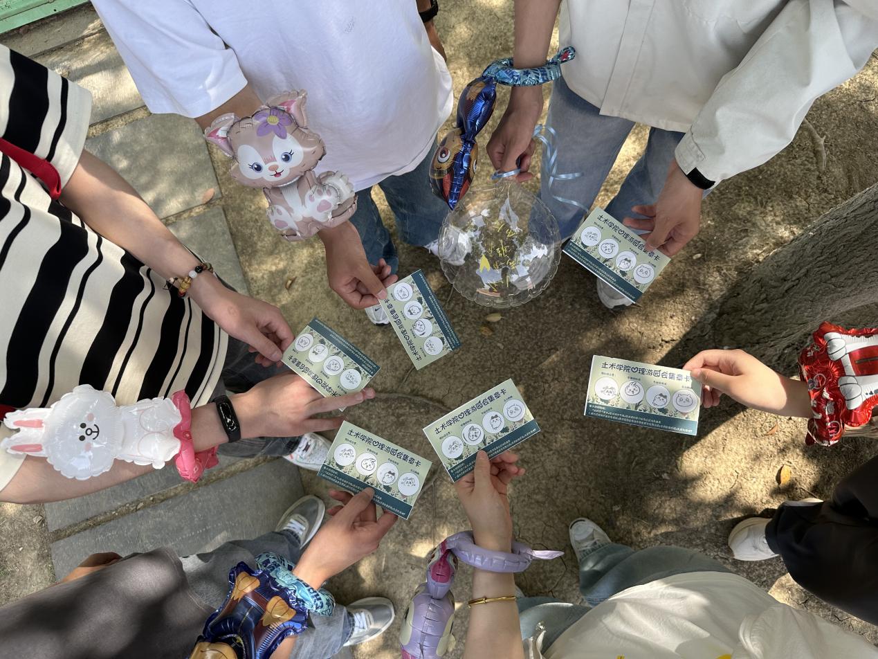 此次游园会共设置“请和我击掌”、“梦想拼贴画”、“手绘波波球”、“自由拥抱”四个项目。活动中同学们在起点处领取手腕气球和集章卡,按照路线游玩体验,完成小游戏盖章打卡,获得一定数量的印章即可在游玩结束时兑换纪念礼物。活动内容丰富有趣,形式多样,现场欢声笑语,气氛热烈,正能量满满,喜悦与欢乐洋溢在每个人的脸上,展现了土木学子青春灵动、积极向上的精神风貌。