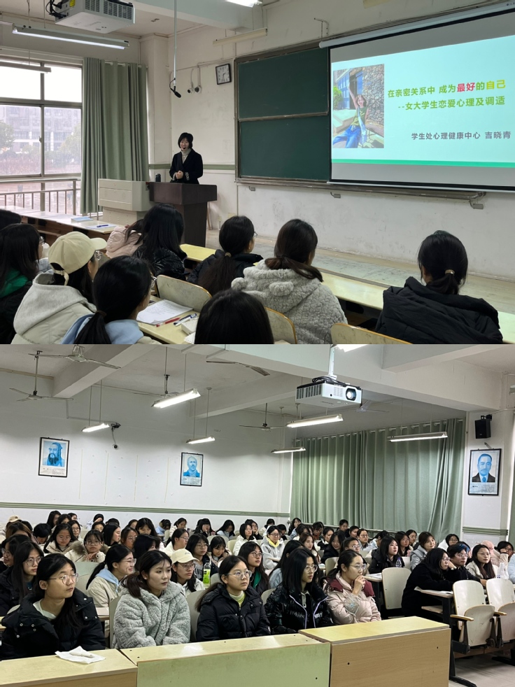 数理学院举办女生恋爱心理健康讲座,邀请安徽建筑大学心理健康中心吉晓青老师担任主讲人。吉老师从认识爱情、女大学生恋爱观、爱的能力提升及爱与自我成长四个方面,深入剖析女大学生在恋爱中的心理问题,帮助同学们理解爱情的真正含义。此次讲座不仅加深了同学们对爱情的认识,更让他们体会到健康爱情的重要性。同学们纷纷表示学到了满满干货,希望未来能够拥有并保持正确的恋爱观,平和冷静地应对情感问题,提升自己爱与被爱的能力,收获属于自己的幸福。