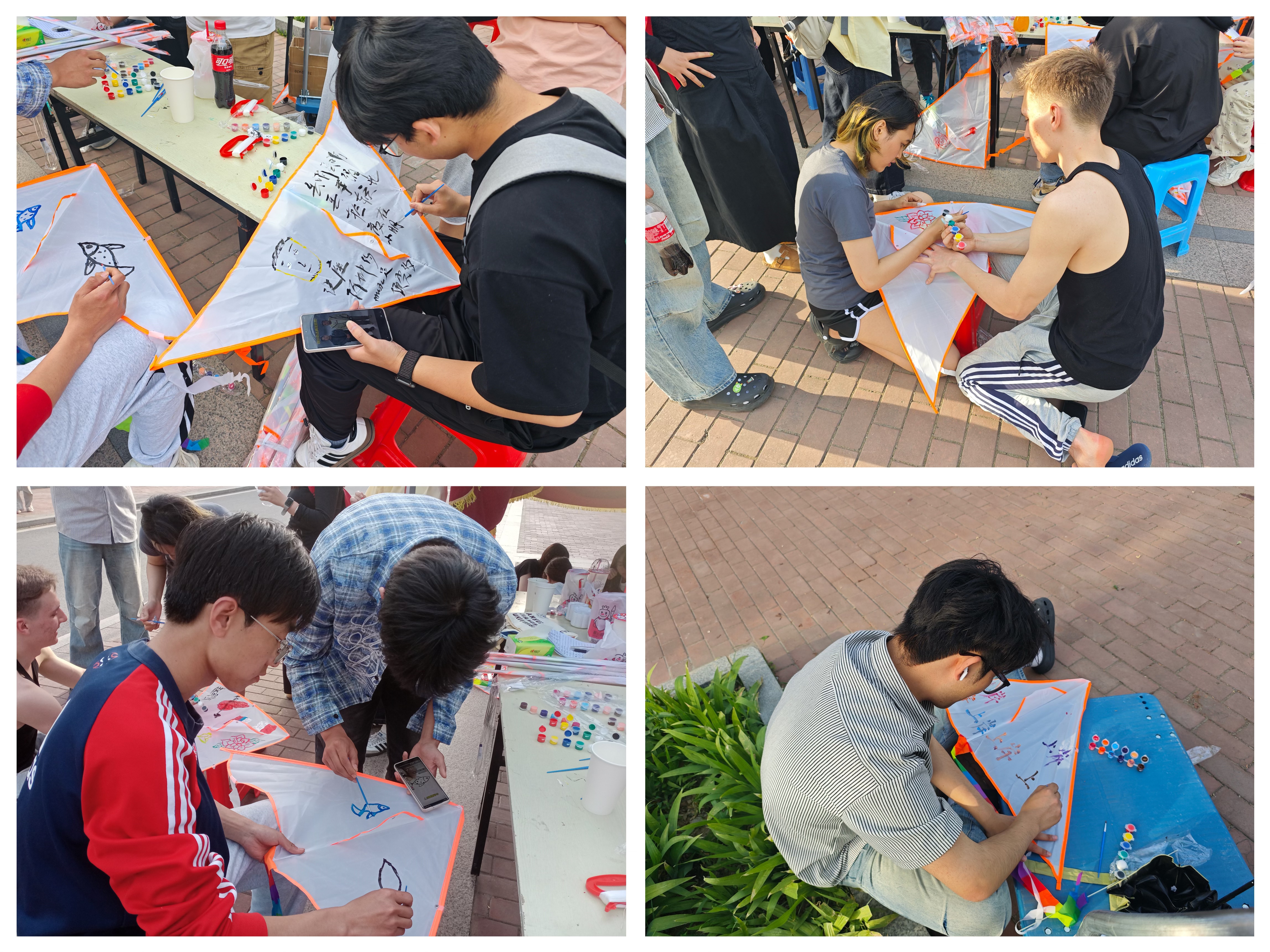 为帮助同学们缓解学习压力,亲近自然,4月16日,环能学院学生会组织了春日风筝节活动,活动现场变身露天画室,百余名学生参与校园风筝节。素白绢布、竹骨颜料一字排开,学生们自由创作,手绘风筝完美出炉。有来自正在备战考研的同学,在风筝上写下对未来考研的殷切期待和美好愿景,还有同学别出心裁地在风筝上描绘了一幅绿意盎然、清洁能源广泛应用的美好环保图景。活动现场,放飞的风筝随风飘扬,欢声笑语不断,不仅为春日的校园增添了一抹亮色,更在同学们的心中种下了美好的回忆,大家在合作中收获了友谊,在创意里展现了自我。