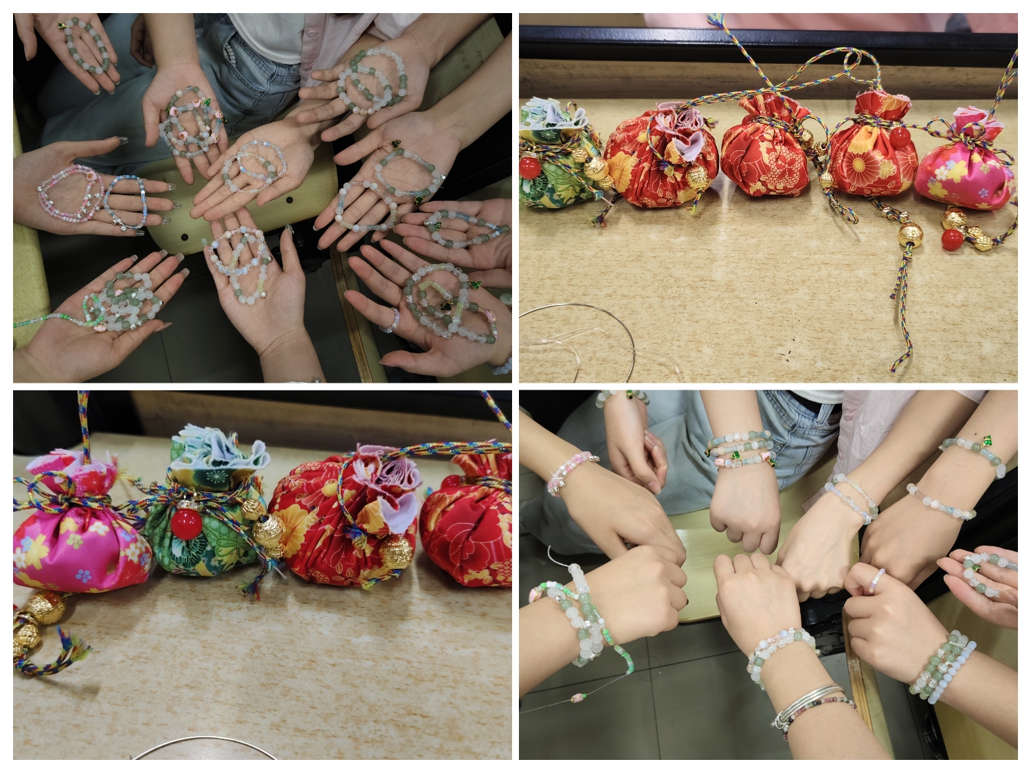 为丰富校园文化生活,将传统节日文化内涵与心理健康服务相结合,学院在逸夫楼508教室举办了“巧手制香囊,五彩迎端午”心理减压手作活动,吸引了众多学生参与。活动现场,同学们在轻松愉快的氛围中围坐一起,在领取彩线、布料、香料等材料后,积极投入到手作创作中。有的同学专注缝制香囊外袋,有的精心编织五彩手绳,还有的巧妙搭配珠串进行装饰。大家通过分工协作,共同完成了一件件富有创意与匠心的作品。