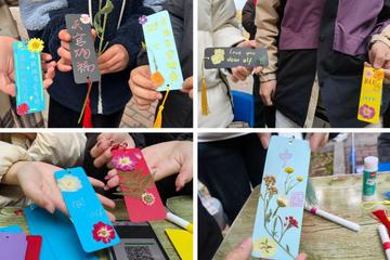 在这里,空白的书签卡纸成为了同学们表达自我的画布。活动现场准备了五彩斑斓的画笔、精致的流苏挂坠、干花以及各类装饰材料。同学们围坐在一起,发挥天马行空的想象力,用画笔描绘出心中的风景,用干花拼贴出自然的诗意。