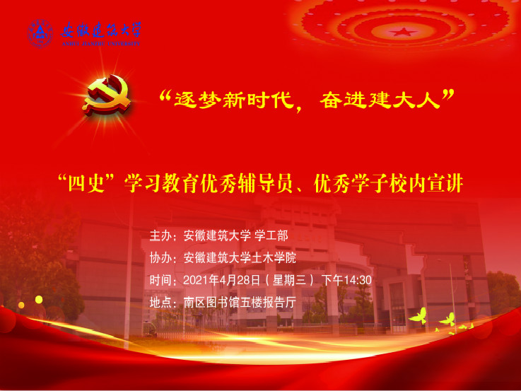 “逐梦新时代,奋进建大人”"四史"学习教育优秀辅导员、优秀学子校内宣讲预告