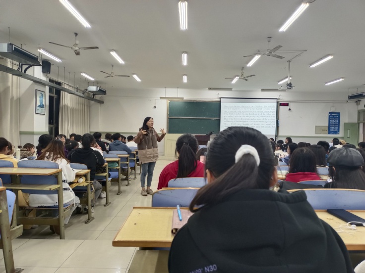 本网讯 为了帮助低年级学生规划大学期间英语学习安排,11月17日晚,外国语学院举办了 “大学生英语学习规划”专题讲座。学院党总支副书记、学工办主任,以及部分大一、大二学生参加了讲座。