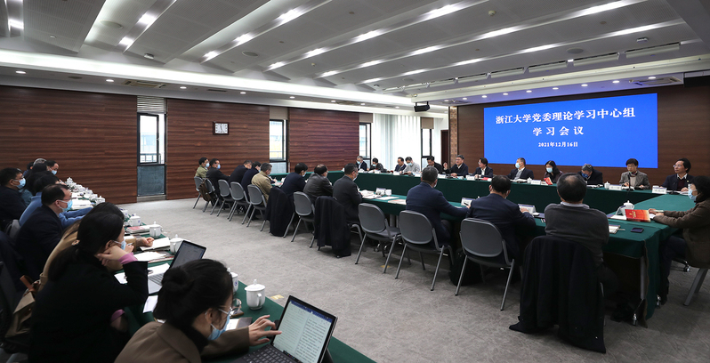 12月16日,浙江大学召开党委理论学习中心组学习会,深入学习领会党的十九届六中全会精神,进一步明确心怀“国之大者”、奋力“走在前列”的工作主题主线,努力谋划中国特色世界一流大学建设新局面。