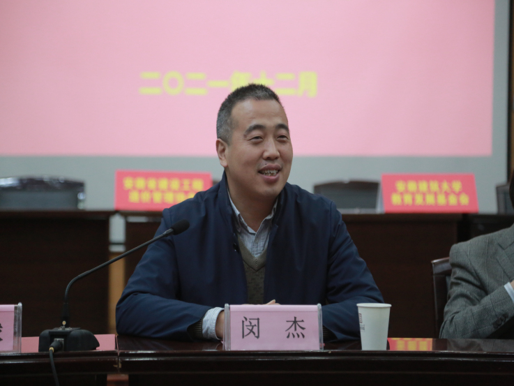 校党委常委、副校长闵杰对安徽省建设工程造价管理协会的到来表示热烈的欢迎,对各单位捐资助学这一善举表示衷心感谢。闵杰介绍了学校近年来的发展状况及未来展望,表示将紧紧围绕立德树人根本任务,以社会奖学金的设立为契机,进一步加强校企合作交流,实现共享、共建、共赢。