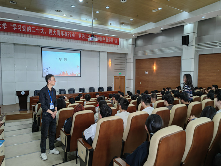 党委学工部部长徐庆和从深刻认识党的二十大的主题和主要成果、深刻认识过去5年的工作和新时代10年的伟大变革等方面,深入阐释党的二十大的重大现实意义和深远历史意义,全面系统宣讲党的二十大精神。他指出,当代青年生逢其时,重任在肩,要提高政治站位,听党话、跟党走,树立正确的世界观、人生观、价值观;要养成健康、阳光、开朗的学习生活心态,积极有为;要加强政治学习、专业学习,注重思维素养和动手能力的训练;要开拓视野,成为埋头苦干的行动派,勤业精业乐业,谱写青春辉煌。