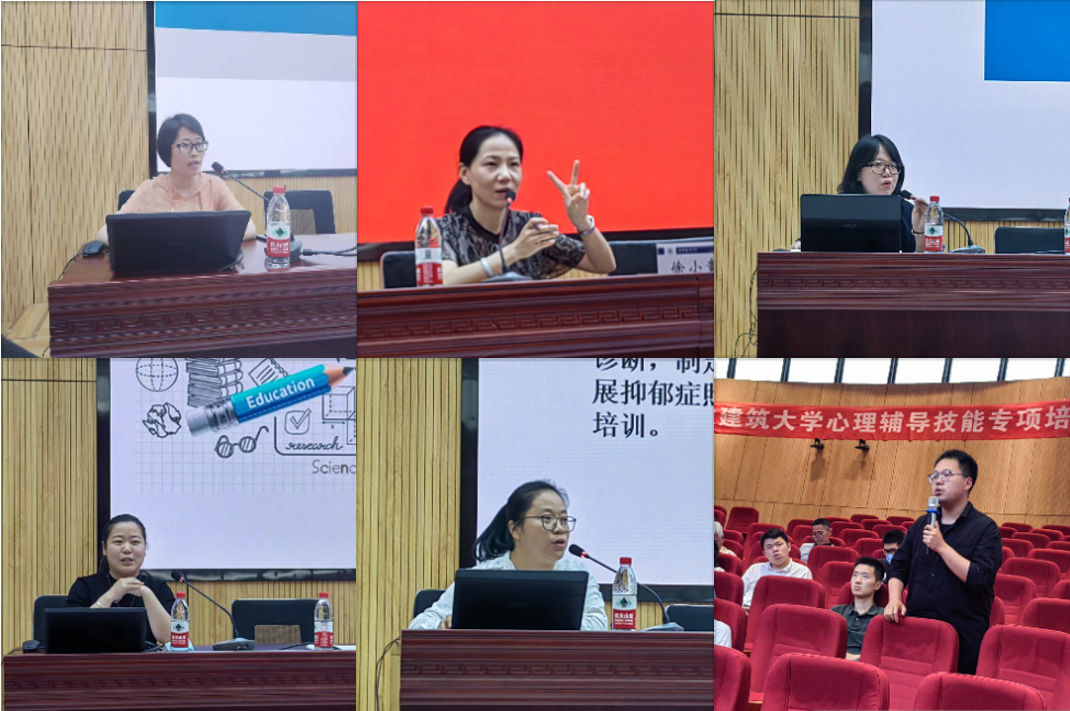 (图为专家为辅导员开展心理辅导技能培训和辅导员外出学习后面向全体辅导员分享经验)