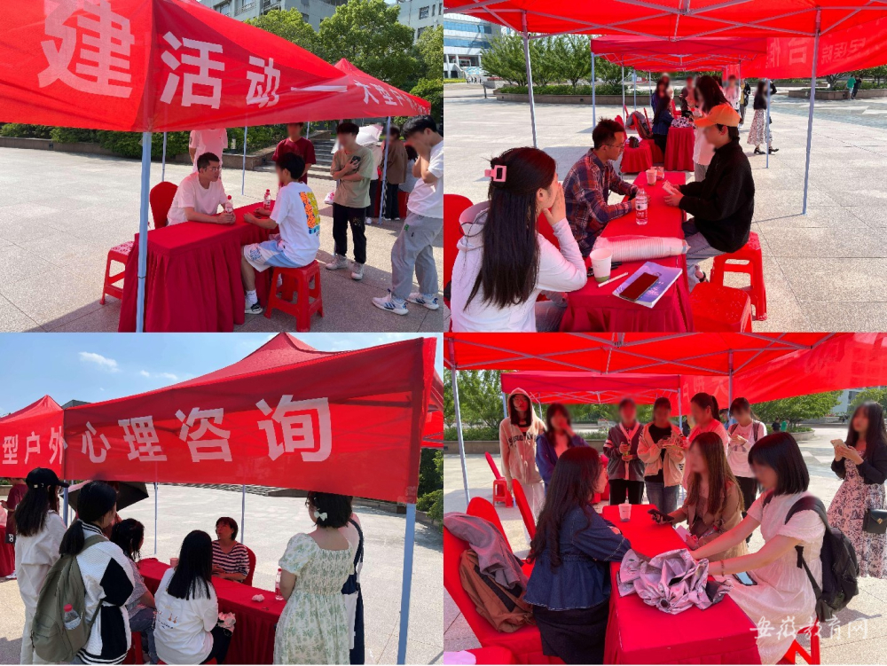 学校举行合肥市第四人民医院大型广场现场咨询活动;增强学生主动求助意识,消除对心理咨询的误解;通过“建大心霖”“安建大公小管”新媒体平台和今日校园话题区等多个平台,聚焦学生成长生活中的热点问题,普及心理健康知识,鼓励学生通过今日校园个人账号以文字、照片、视频等方式分享开心事,传播正能量,营造积极向上的心理健康文化氛围;各学院积极开展主题班会、心理健康座谈会、一对一心理辅导等活动,引导大学生学会情绪管理,人际交往,帮助就业毕业季大学生应对心理落差,调试择业心理。