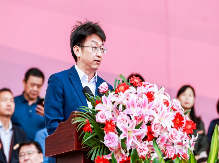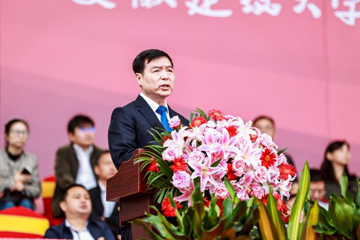 学校党委副书记、校长黄显怀教授在典礼上致辞。他代表全校师生员工欢迎5000多名新同学加入安徽建筑大学,祝贺大家开启人生新的篇章,并就如何成为“新时代中国青年”向全体2023级新生寄予了三点希望:一是以理想为帆,不惧远航。“少年应有鸿鹄志,当骑骏马踏平川”;二是以奋斗为桨,善建担当。“道阻且长,行则将至;行而不辍,未来可期”;三是以创新为刃,破茧成蝶。“满眼生机转化钧,天工人巧日争新”。传承“进德、弘毅、博学、善建”的校训精神,不负时代重托,勇逐家国之梦,共赴青春之约,在安徽建筑大学度过无悔的青春。