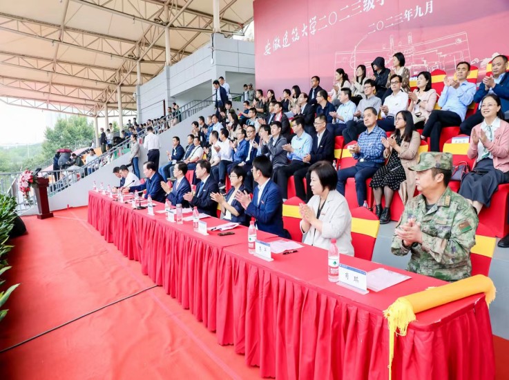 伴随着“我爱你,中国”旋律,2023级新生军训成果展示暨开学典礼圆满结束。本次活动在“安徽建筑大学学生处”视频号等平台进行了同步直播。(文/图:虞婧王凯蒋芮;审稿人:徐庆和)