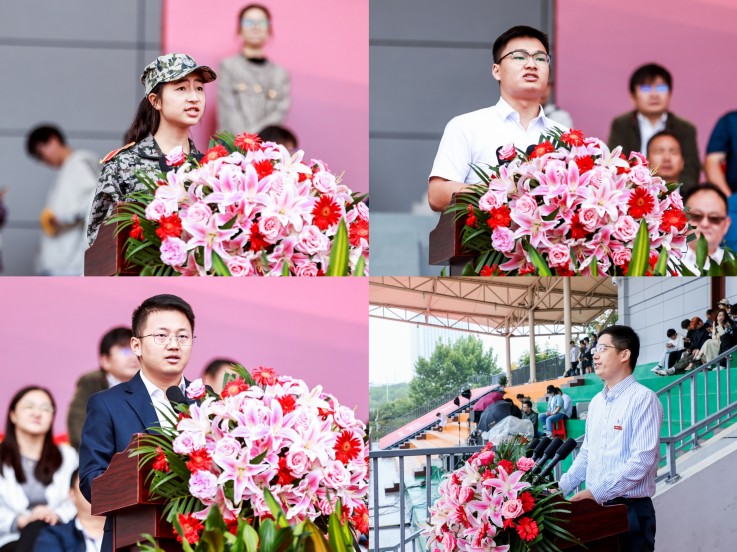 机械与电气工程学院2023级本科生杨凯雁作为新生代表发言,表达了自己到安建大学习的激动心情和对未来四年生活的期望。土木工程学院2023级研究生张彪作为老生代表发言,分享了大学生活经验,希望新生们要学会学习、学会思考、学会为人、学会规划,充分利用大学给予的资源和条件,全方位锻炼自己、提高自己,在建大绽放绚丽青春。东超科技董事长、总经理韩东成作为优秀校友代表发言,他与各位新生分享了四点感悟:第一,仰望星空,无论何时,都不能自满;第二,永不言弃,永远不要让周围的一切,成为你前进的壁垒;第三,勇于尝试,面对未知,跳出“舒适圈”;第四,风雨之后见彩虹,不要害怕失败。土木学院执行院长张宁教授作为教师代表发言,他用铿锵有力的话语勉励大家要勤学善思,做有真才实学的人;要笃行不怠,做有担当作为的人;要积极乐观,做有情怀温度的人。