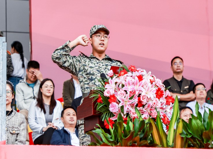 来自电子与信息工程学院的高川航同学带领全体2023级新生进行了入学宣誓,喊出了“请党放心,强国有我”的时代最强音。