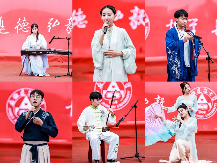 军训成果展示结束后,由各学院学生精心准备的暖场节目让南校区田径场的气氛更加热烈青春。同学们将中华优秀传统文化与现代歌舞创新性结合,用刚柔并济、气韵生动的古风演出,赢得在场师生的阵阵掌声。