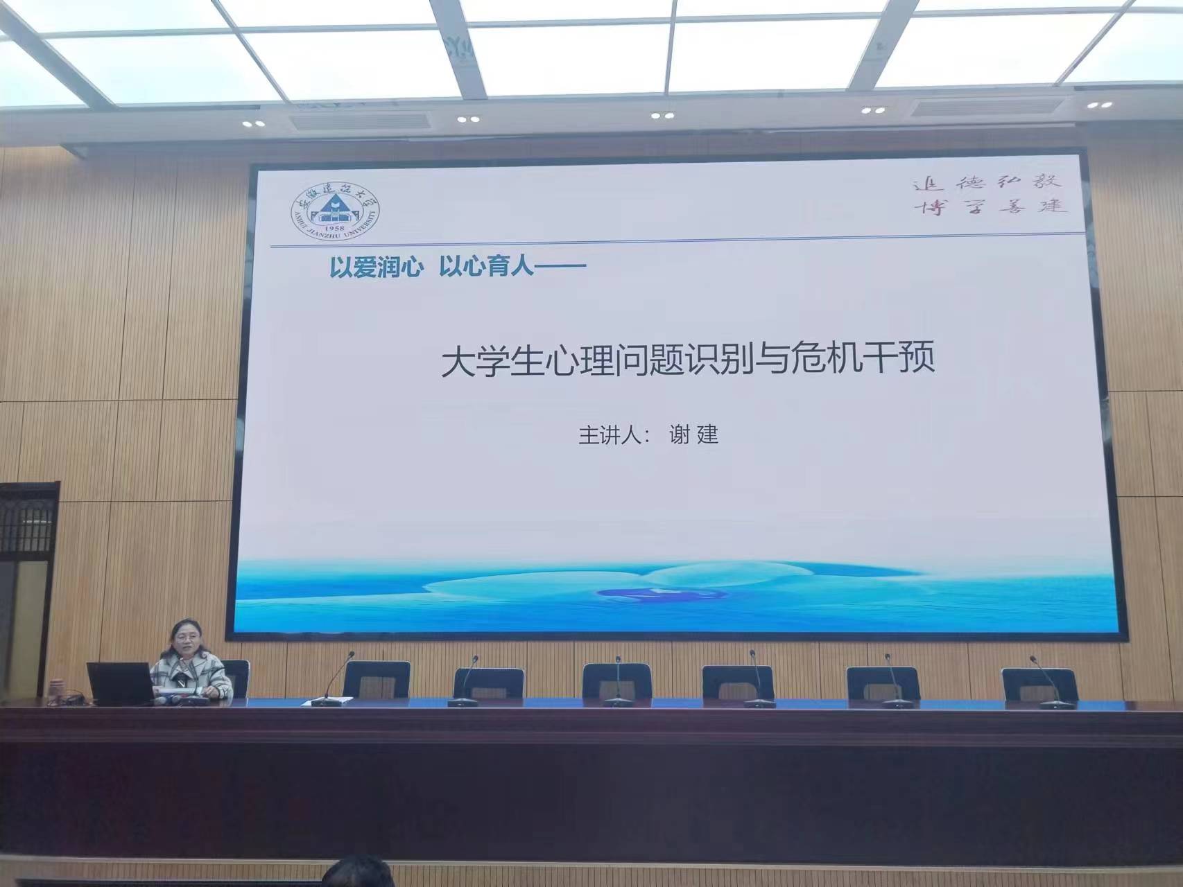 谢建教授从“心理健康教育的重要性”“学生心理问题的识别”“心理危机的预防与干预”三个方面展开系统而深入的讲解,介绍了大学生常见的心理问题及学生心理危机的应对措施,提醒大家要了解学生心理发展的规律,走进学生心灵,给予学生温暖而有效的帮助。