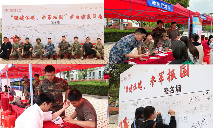 活动现场,有参军入伍意向的同学在工作人员的指引下登记信息,逐项接受检查,秩序井然。现场还设置了政策咨询台,由优秀退役大学生士兵为同学们答疑解惑,介绍征兵优待政策,分享自己在部队的成长经历、训练生活、军营见闻等,气氛活跃,氛围浓厚,同学们纷纷在签到墙上签名,表达自己献身国防、参军报国的理想抱负。