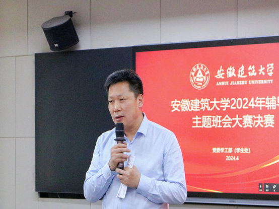 本网讯 为进一步提高新时代学校辅导员的工作能力与育人水平,瞄定2035建成教育强国目标,全面提升立德树人质量,增强育人实效,发挥主题班会的思想引领、教育引导的作用。4月25日下午,学校在徽学楼六楼教师教学发展培训中心成功举办“秉初心 砺新程 熠未来”2024年辅导员主题班会比赛决赛,此次决赛邀请多名校外专家进行评审,安徽省教育厅高校学生处负责人一行亲临现场观摩指导。