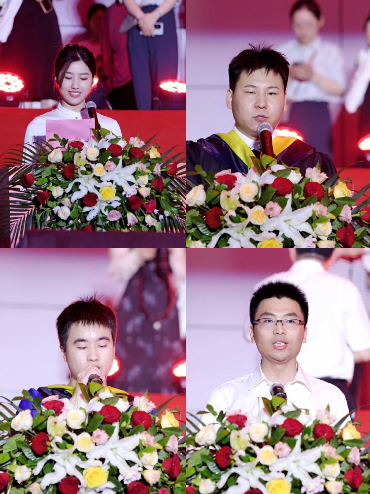 来自材料与化学工程学院2020级金属材料工程专业的杨询,即将进入中国科学技术大学苏州纳米研究所攻读硕士,他作为本科毕业生发言:“我们何其有幸,一同见证了中国共产党百年华诞、一同经历了冬奥会中国冰雪激情时刻、一同参与了母校成功获批博士点和65周年校庆的盛举。请老师放心,请母校放心,不管身在何处,我们一定谨记老师们的谆谆教诲,牢记‘进德、弘毅、博学、善建’的建大校训,不负时代,不负韶华,以锐意创新的勇气、敢为人先的锐气、蓬勃向上的朝气,立足岗位、苦练本领、创先争优,在祖国各地发光发热,为祖国的建设事业添砖加瓦,为实现中华民族的伟大复兴不懈奋斗!”