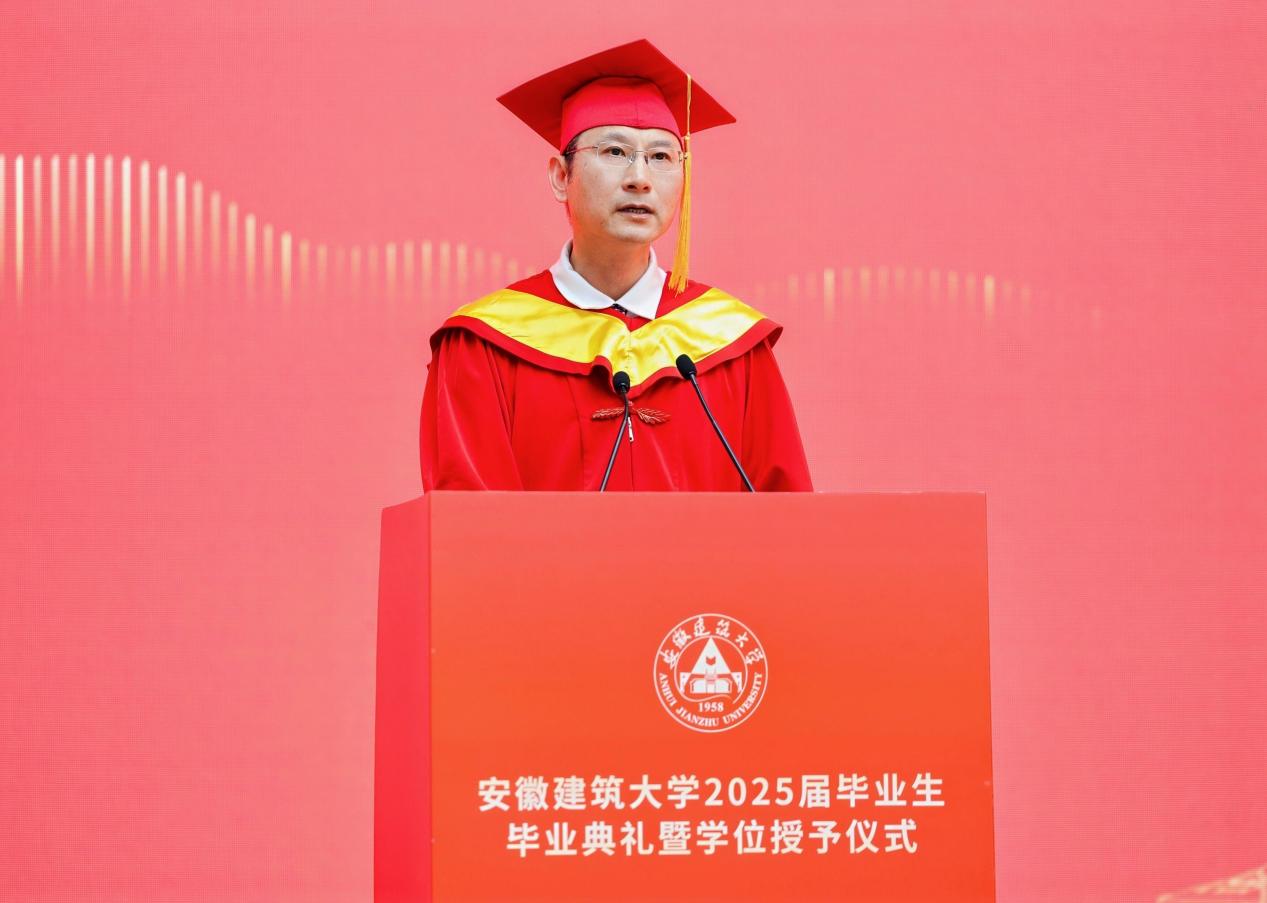 校党委常委、副校长杨科宣读了《安徽建筑大学关于2025年上半年毕业生学位授予的决定》。校党委书记马文革宣读了《关于表彰2025年安徽省及学校优秀毕业生的决定》,并向受表彰的先进个人表示热烈祝贺,希望他们珍惜荣誉,再创佳绩,为全体毕业生树立榜样。