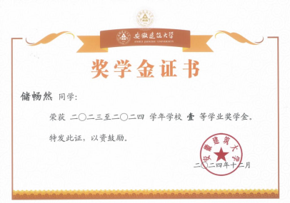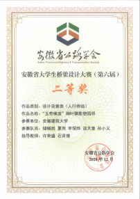 他积极参加学科竞赛和科研项目。曾作为项目负责人荣获第六届安徽省桥梁设计大赛二等奖,也参与了省级大学生创新创业训练计划项目,并顺利结项。同时也获得了羽毛球团体赛三等奖、运动会男子4×100米第二名等文体奖项。