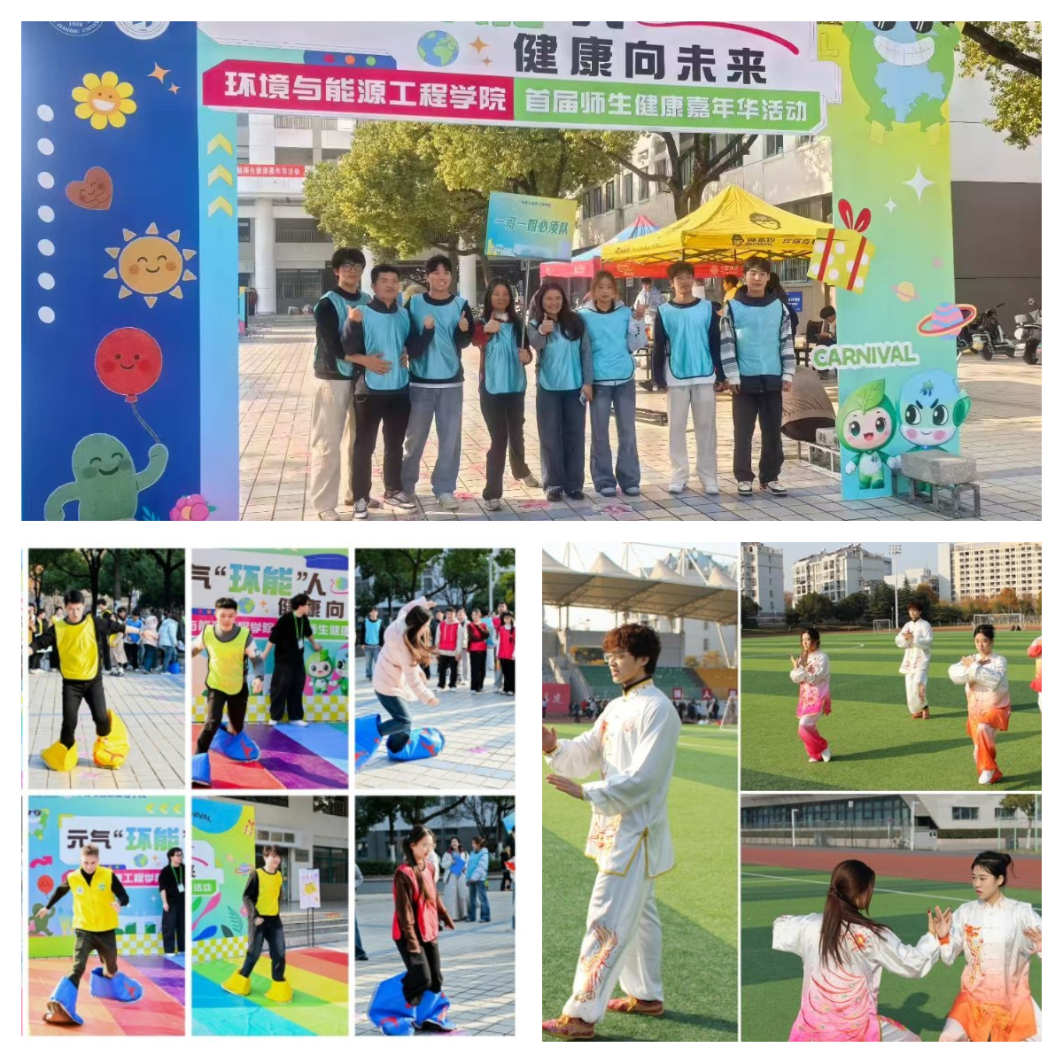 “身体与能量”恢复系列聚焦身心协同,借助团体运动与传统养生帮助学生释放压力、涵养能量。环能学院的健康嘉年华设置团体闯关项目,师生在“快乐大脚”等协作中诠释“以体强心”;设计创意学院的疗愈太极与机电学院的八段锦体验,则将传统养生智慧融入现代校园生活,引导学生在舒缓动作与规律呼吸中感受内在平和。