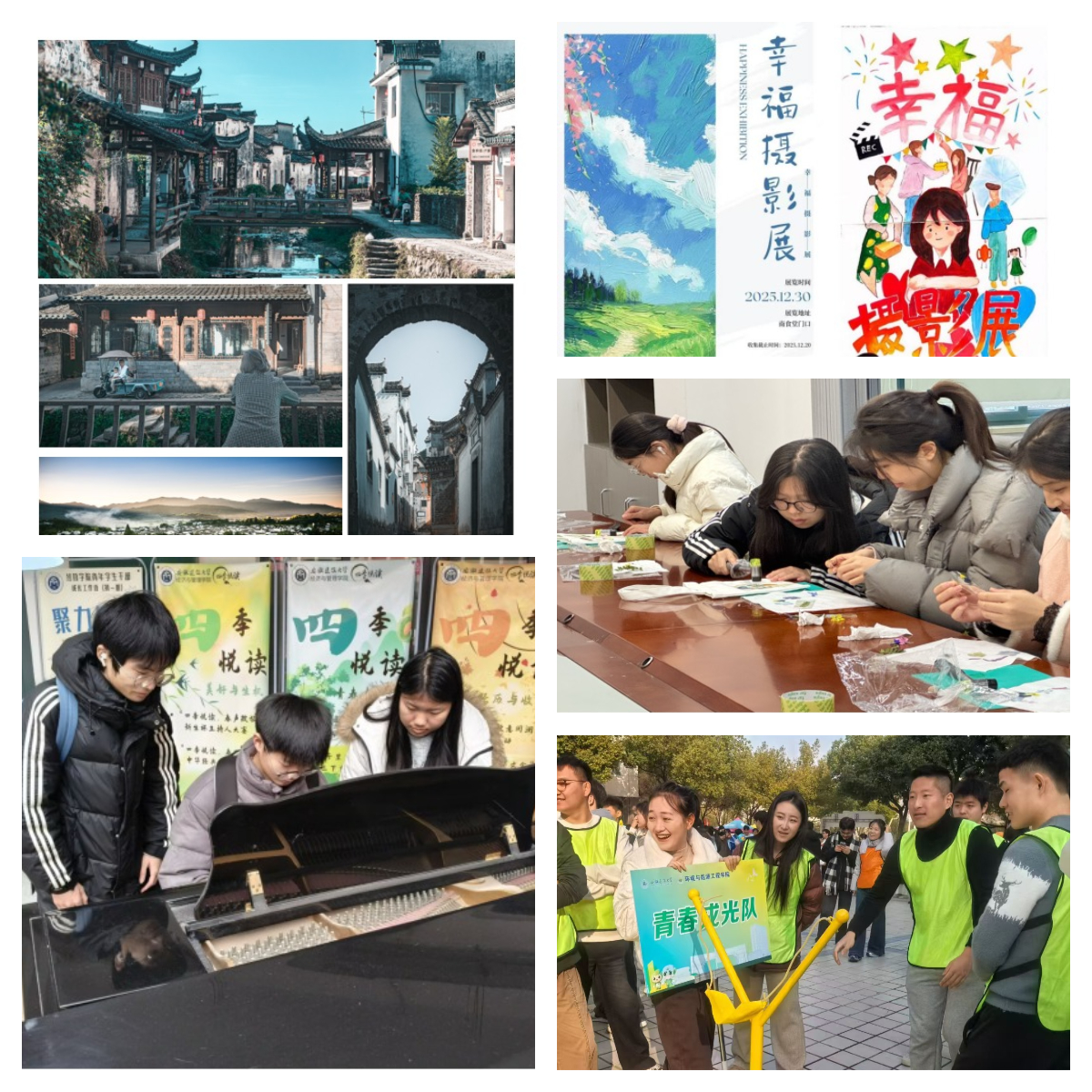 “五感静观”体验系列着力于开启感官,引领学生从细微之处感知生活之美。经管学院的钢琴角琴音流淌,营造出沉浸式的听觉疗愈空间;土木学院的幸福摄影展和设计创意学院的微观摄影,则引导学生用镜头捕捉容易被忽略的光影与美好,训练观察力,提升幸福感;外国语学院的植物拓印让学子在专注敲击中释放压力,环能学院的健康嘉年华则通过多元协作体验,促进师生间的深度理解与联结。