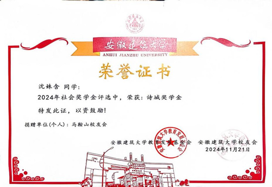 回望在安徽建筑大学的学习时光,沈姝含十分感谢学校提供的优质学习平台,感谢老师们在课堂上的悉心教导与课后的耐心指引,也感谢那个始终保持初心、在学习中全力以赴的自己。最后,她想对正在为人生目标奋斗的同学们说:“每个人的成长节奏不同,不必因他人的光芒而焦虑,找准自己的方向,专注做好当下的每一件事,用坚持与笃行浇灌理想,终会抵达想要的远方。愿我们都能在追逐梦想的道路上,步履不停,向阳生长。”(文/图:汤伦、沈姝含;一审:汪令宇、方绍正;二审:帅英;三审:潘和平、徐庆和)