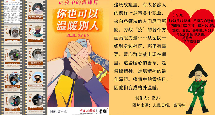 做一颗永不生锈的螺丝钉,崇尚奋斗,助力抗疫,自觉学习雷锋精神。倡议书发出后,在广大学生当中反响热烈,土木学子们深受鼓舞,以手抄报的形式践行学习宣传雷锋精神,以自己的方式和情感表达为在疫情一线践行雷锋奉献精神的医务工作者和防控工作人员致敬,努力奋斗,争做勤于学习、善于创造、甘于奉献,有理想、有道德、有文化、有纪律的社会主义事业的建设者和接班人!