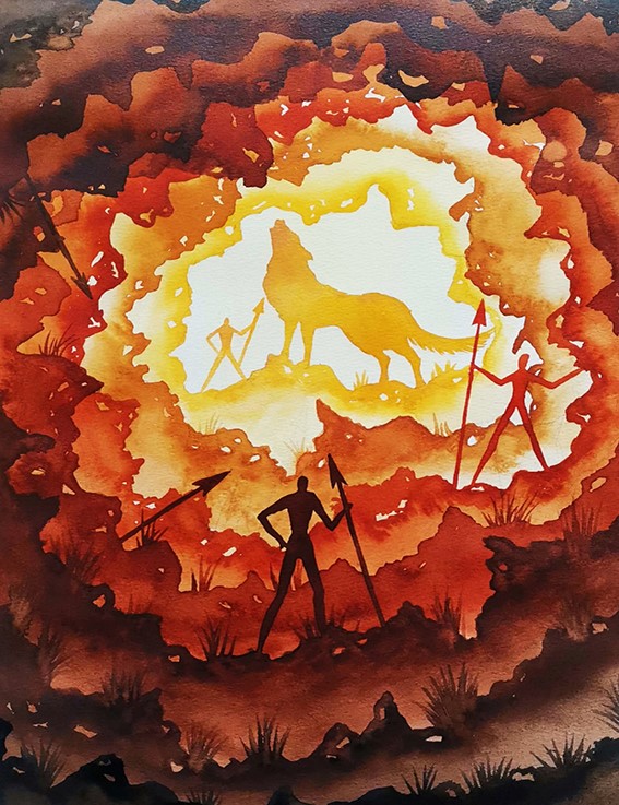 18级视觉传达设计专业牛茹艳通过阅读《狼图腾》一书,创作水彩画《野心》。书中讲述了上个世纪六七十年代知青在内蒙古草原插队时与草原狼、游牧民族相依相存的故事,其中有这样一段话激励着她:“没有捕捉不到的猎物,就看你有没有野心去捕;没有完不成的事情,就看你有没有野心去做。”遇到困难,不要退缩,相信自己,只要肯努力,肯坚持,就一定会有成功的一天。