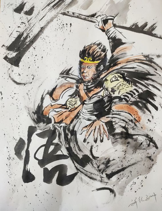 19级视觉传达设计专业许纪洲采用水墨的方式,创作作品《我命由我不由天》。孙悟空拜师于“灵台方寸山,斜月三星洞”。所谓“灵台方寸”,指的就是“不忘初心”;所谓“斜月三星”,指的就是在困难面前“砥砺前行”。愿每一位当代青年都能跨过实现梦想的征途中的“九九八十一难”,升华人生价值。