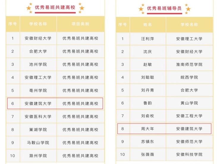 本网讯 近日,安徽省高校2023年易班共建工作评优结果公布,我校获评安徽省2023年优秀易班共建高校,周大年老师获评优秀易班辅导员。