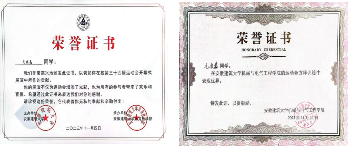 “以赛探趣、以模砺心”,这是毛银鑫对待竞赛的独特态度。他积极投身于各类赛事,不仅为了荣誉,更为了在更广阔的平台上深化专业认知、锤炼团队精神。