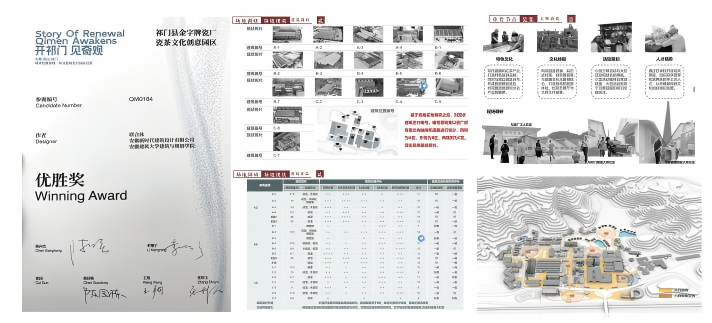 大四阶段,她有幸深度参与了安徽建筑大学与安徽新时代建筑设计有限公司合作的国际设计竞赛。在《安徽黄山祁门城市更新策规一体及建筑设计》项目中,导师团队在对当地深入细致的调研中,敏锐地发现了瓷茶文化这一贯穿历史与当下的重要线索。“导师提出的以瓷茶文化为设计主线,让我明白深入的文化挖掘是空间再生的灵魂所在。”最终团队方案荣获优胜奖,她深切体会到:“这个成果是产学研各方智慧的共同结晶。它让我明白,好的设计必须建立在扎实研究的基础上,并最终服务于社会发展。”这些实践经历不仅强化了她解决复杂问题的综合能力,更让她确立了将学术研究、专业设计与社会需求深度融合的信念。