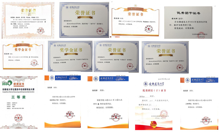 张欣妍,中共预备党员,安徽建筑大学公共管理学院2022级土地资源管理专业本科生。本科期间,平均绩点4.01(1/52),曾获得国家奖学金,连续三年获得一等学业奖学金,多次获得“年度标兵”、“三好学生”、“优秀学生干部”、“优秀团员”等荣誉称号;她积极参与学科竞赛与科研项目。曾获得大学生创新大赛(2024)省级银奖、安徽省“模拟政府”大赛省级二等奖、安徽省服务外包创新创业大赛三等奖等竞赛奖项;在科研方面,作为主要成员参与大学生创新创业训练计划,获三次立项。其中《基于绿色基础设施识别的湖滨生态空间网络构建与优化——以肥西三河国家湿地公园为例》项目获国家级立项。现已保研至中国海洋大学公共管理学专业土地资源管理方向