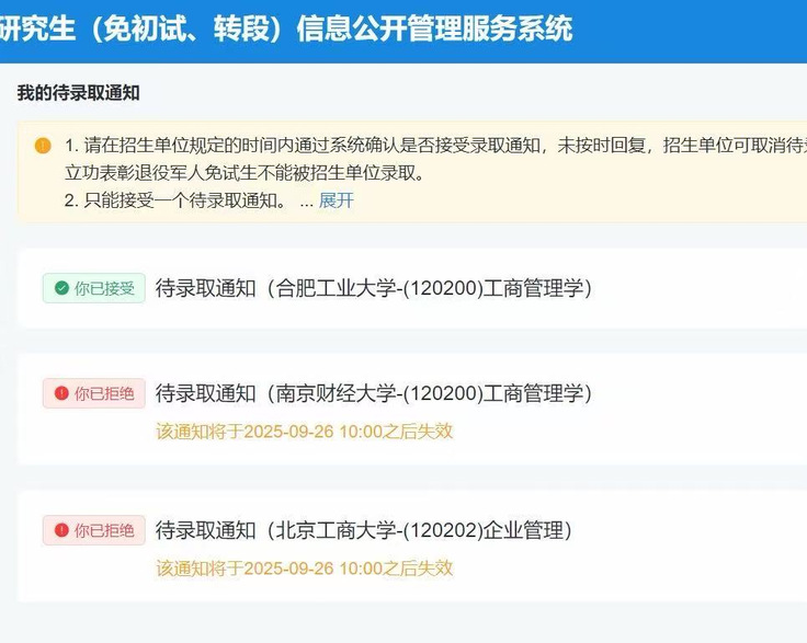 在9月初,胡洁才拿到保研名额,在此之前她已经准备了半年的考研了,她从三月起便一头扎进了考研备考的节奏里。每天早上七点多,图书馆的自习室里就能看到她的身影,从考研英语的真题精读、管理学专业书的逐章梳理,到数学真题的反复演算,她给自己制定了严苛的备考计划,每天学习时长稳定在10小时以上。半年的考研备考积累,不仅没让她在保研竞争中掉队,反而让她对专业知识有了更系统、更深入的掌握。在后续的保研面试中,正是这份扎实的知识储备,让她面对考官的专业提问时应答自如,顺利拿到了保研录取通知。
