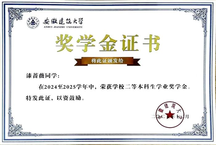 与许多初入大学校门的同龄人一样,漆蔷薇也曾有过面对新环境的适应考验,但她并未让自己长久停留在迷茫的阶段,而是主动伸出手,试图握住大学生活的脉搏。她始终坚信,课堂是知识的源头,是老师们的经验,是多年学识与工程智慧的凝结,这不止于课本上冰冷的公式,因此,她为自己构建了一套完整的有效学习公式:课前,她预习勾画,带着问题走进教室;课上,她目光紧随老师的板书和节奏,手中握紧记录之笔,也思考着知识点;课后,整理笔记、推导真题,与同学探讨专业难题,成了她学习生活的常态。三年下来,她的专业成绩始终位居前列,连续三年获得校级二等奖学金,这份成绩,是她用专注与坚持一步步铺就的。