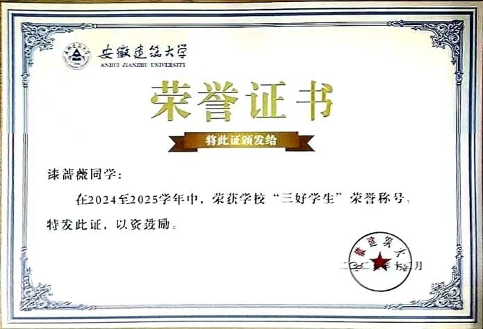 在校期间,漆蔷薇在深耕学业的同时,始终坚持全方位自我提升。思想引领方面,她政治立场坚定,积极向党组织靠拢,以高标准严格要求自己,光荣加入中国共产党,并在日常学习生活中切实发挥了党员的先锋模范作用。综合表现方面,她品学兼优,连续多年获评校级“三好学生”“优秀团员”及“优秀团干”等荣誉称号,以实际行动诠释了新时代青年的责任与担当,是师生公认的全面发展典范。