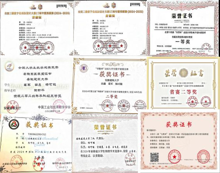杨可能,中共党员,安徽建筑大学电子与信息工程学院2022级通信工程专业学生。自入学以来,他始终以勤勉笃行的态度投身学业,努力学习,成绩稳居专业前列,平均绩点3.94,专业排名第一,凭借优异的学术能力与全面的综合素质,成功保研至江南大学集成电路科学与工程专业。本科期间,他兼顾理论探索、科研创新与竞赛实践,积极参与各类学科竞赛,累计获得国家级竞赛奖项3项、省级竞赛奖项13项,校级奖项若干,以项目负责人身份完成国家级大创项目一项,作为核心成员参与省级大创项目一项,连续三年荣获校级“三好学生”“校一等学业奖学金”以及“国家励志奖学金”等多项荣誉。