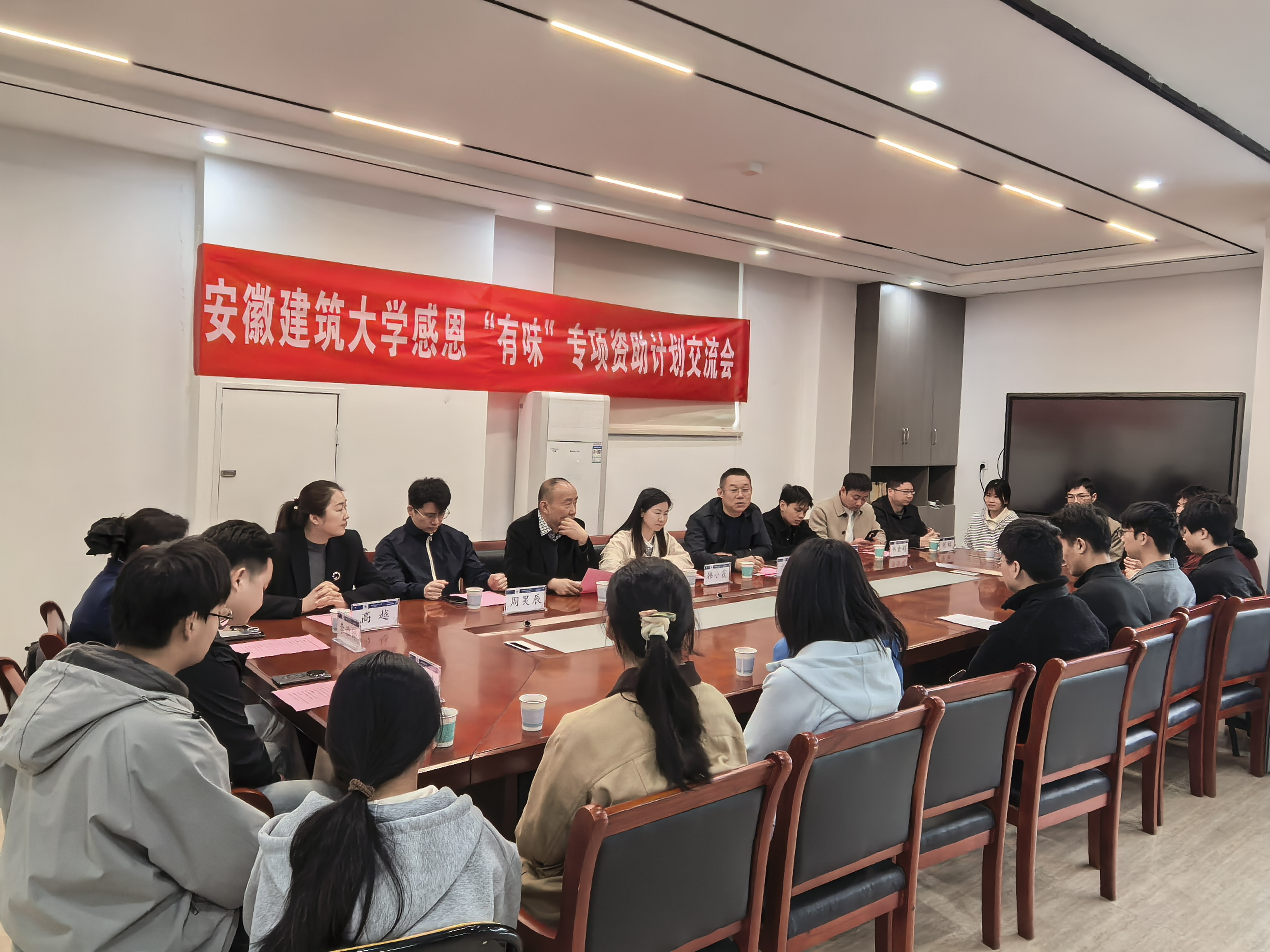 本网讯 春风沐校园,温情伴初心。3月26日,安徽建筑大学感恩“有味”专项资助计划交流活动如期举行,学生处、后勤基建处相关领导,设奖餐饮企业代表深入学校“一站式”学生社区与受资助学生代表面对面交流,共话资助情谊。