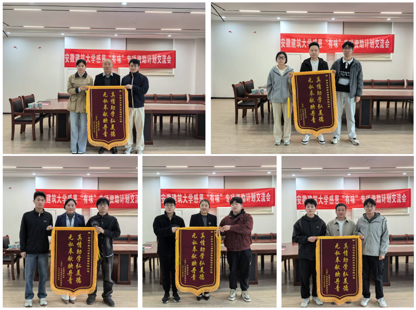 来自不同学院的11名受资助学生代表向资助企业表达了诚挚谢意,他们分别汇报了自己在学业发展、科技创新、志愿服务等方面取得的成绩。同学们纷纷表示,将把这份关爱化为奋进动力,刻苦学习、锤炼本领,未来以实际行动回报社会,传递爱心。企业代表也寄语学子,要紧跟时代步伐,勇敢追逐人生梦想,并表示将在持续为师生提供优质服务的同时,继续履行好社会责任,助力学校资助育人事业,携手守护学子成长。与会学生代表向五家爱心企业敬献了锦旗。