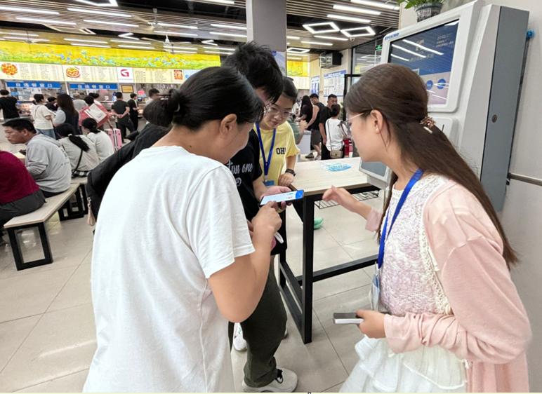 为帮助新生尽快熟悉校园一卡通使用,信息网络中心于南、北校区食堂设立了“校园一卡通服务日”咨询点。活动现场,工作人员在每台圈存机醒目位置张贴“校园一卡通使用说明”和“新生校园卡充值须知”,主动走向前来办理业务的新生,耐心演示操作流程,协助新生完成密码修改、充值等操作,并解答大家在用卡过程中遇到的问题。通过面对面、手把手的服务,让新生在入校第一天就感受到便捷和温暖,更快融入校园生活。