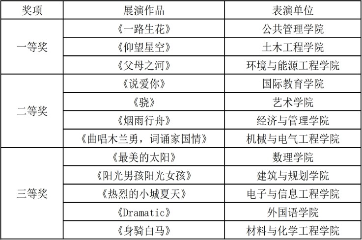 本次展演经专家评审,共评选出一等奖3个,二等奖4个,三等奖5个,现予公布: