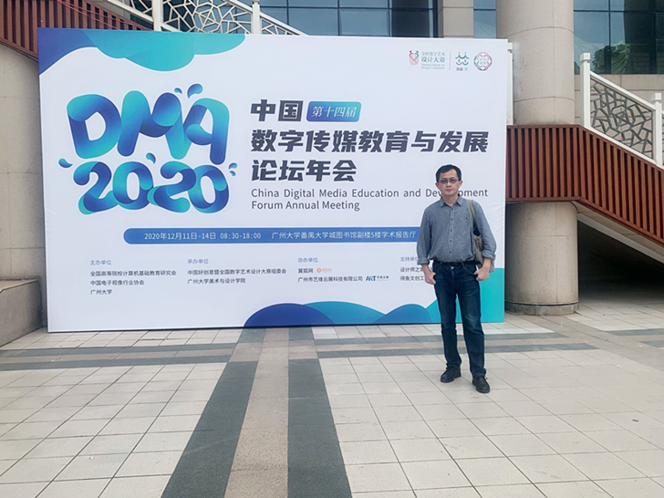 本网讯 12月12日-14日,“第十四届中国数字传媒教育与发展论坛年会”(2020年度)在广州大学隆重举行。教育部动画与数字媒体专业指导委员会(以下简称教指委)的专家、以及全国各大院校视觉传达设计、动画、数字媒体领域的专业教师与负责人,约三百多人齐聚羊城,出席一年一度的中国数字媒体艺术盛会。我院副院长黄朝晖、动画系主任范骏、张抗抗等一行四人参加了盛会。