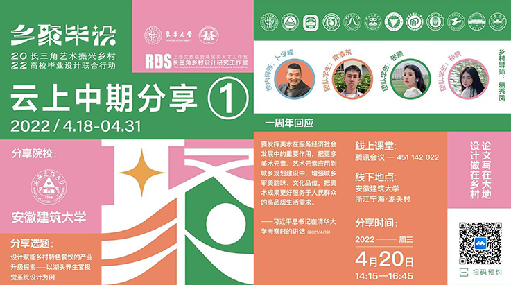 本网讯 4月20日,艺术学院卜令峰、汪哂秋老师携部分本科毕业生、研究生开展了“乡聚毕设·长三角艺术振兴乡村高校毕业设计联合行动”中期成果云端汇报。在本次联合毕业设计中,基于浙江省宁海县湖头村历史文化与产业需求,我院承担了湖头村特色餐饮产业升级的视觉系统设计。在3月份赴宁海湖头村开题和考察之后,指导教师与同学们多次讨论,形成三份设计方案。参与线上汇报的同学精心准备,从系统性、在地性以及村民的主体性等方面,探索设计赋能乡村产业升级的策略,并从服务设计的角度进行产业链的系统设计。